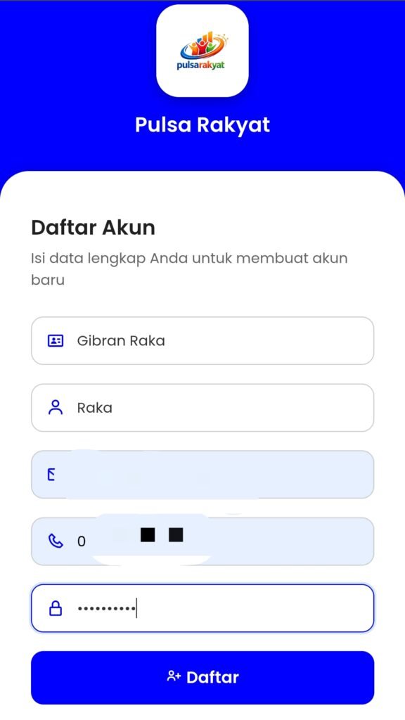 Selamat!! kalian sudah berhasil daftar di Pulsa Rakyat!