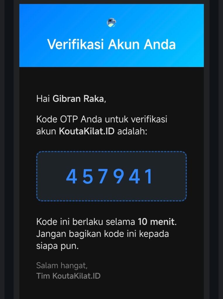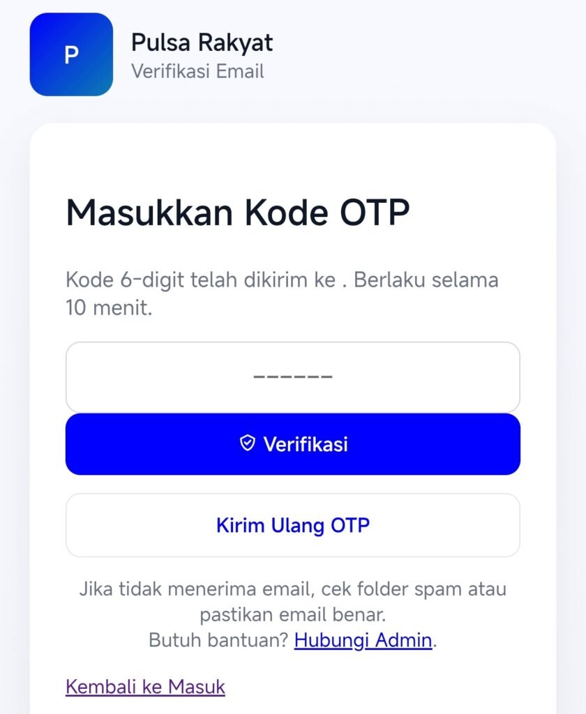 Setelah Kalian Klik Daftar, Kalian akan di minta untuk verifikasi email kalian, dan akan di minta OTP ke EMAIL aktif :